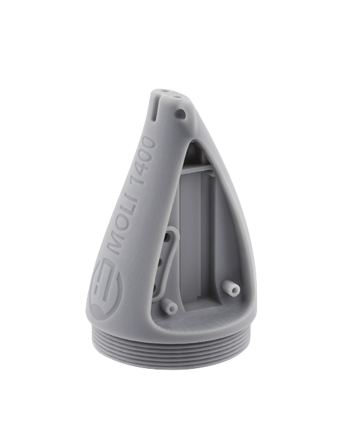 เรซิ่นที่ใช้ในระบบพิมพ์ 3 มิติ อยู่ในรูปแบบของเหลว ที่จะแข็งตัวเมื่อโดนแสง UV เนื่องจากราคาเรซิ่นที่ใช้พิมพ์มีราคาค่อนข้างสูง จึงทำให้ราคาชิ้นงานที่ผลิตขึ้นมา มีต้นทุนที่สูงกว่าหลายเท่า เมื่อเที่ยบกับวัสดุที่ใช้ระบบฉีดพลาสติก